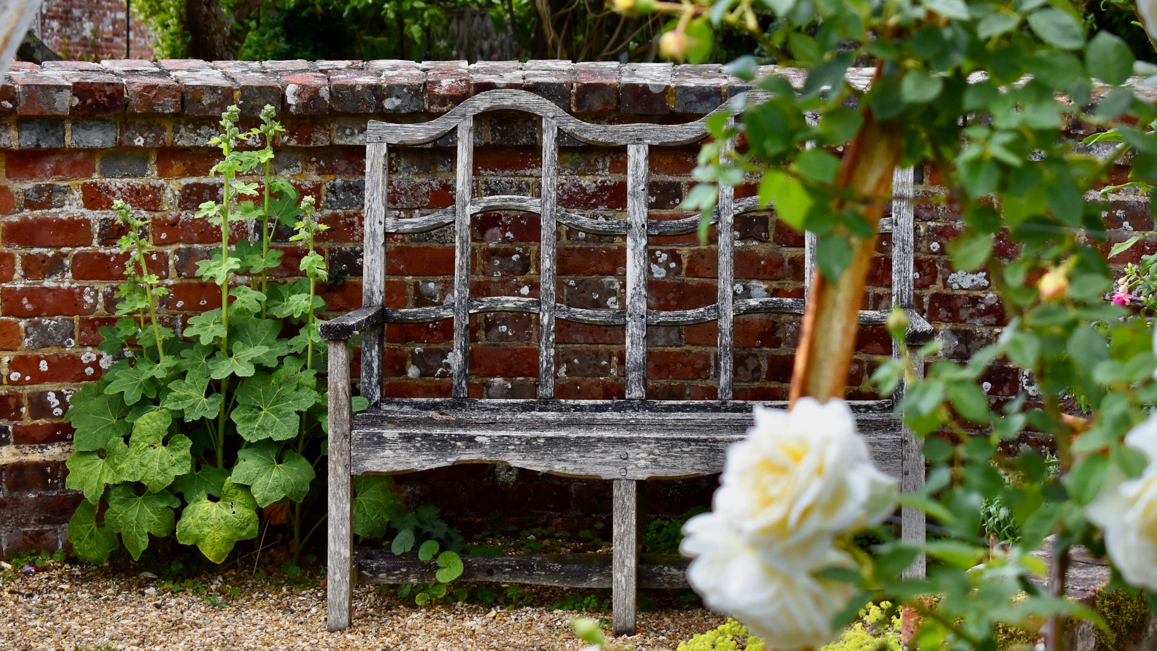 Continue along the curved gravel path to the South Lawn with its patches of camomile and a magnificent plane tree on your right. In the spring the tree is surrounded by crocuses and daffodils. As you look across the valley, the Bignor Roman Villa nestles between the first elevation and the South Downs.